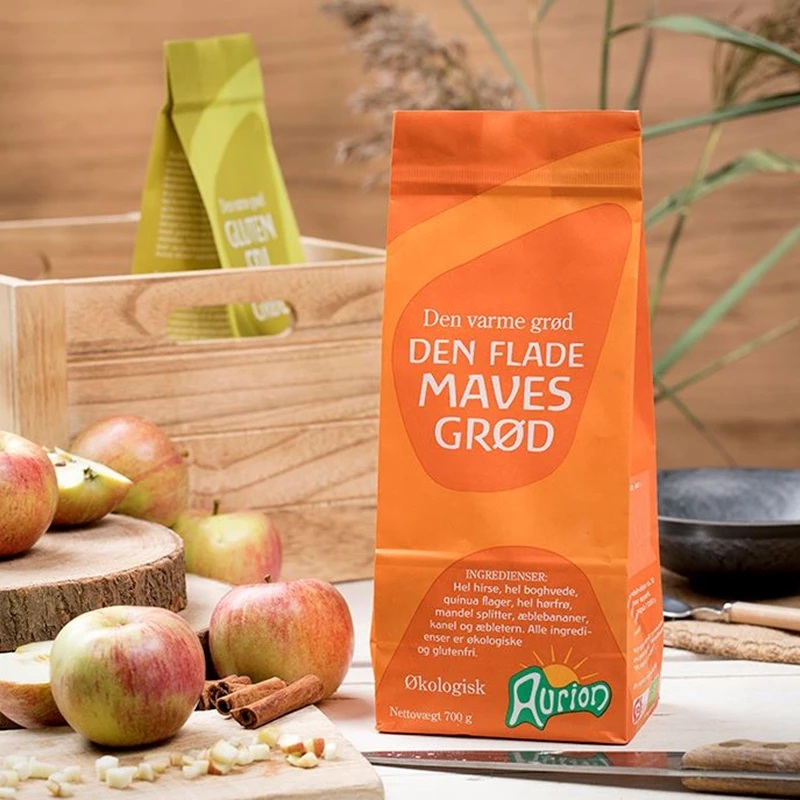 Den flade maves grød, glutenfri, økologisk, 700 g: https://www.aurion.dk/den-varme-groed--30/den-flade-maves-groed-glutenfri-oekologisk-700-g--201625