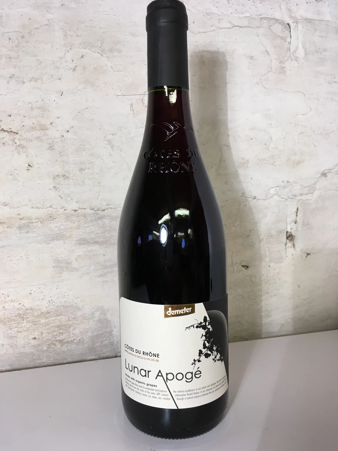 Côtes du Rhône, Lunar apogé 2018, biodynamisk rødvin: https://www.hvidlog-vin.dk/collections/rodvin/products/cotes-du-rhone-lunar-apoge-2018-frankrig