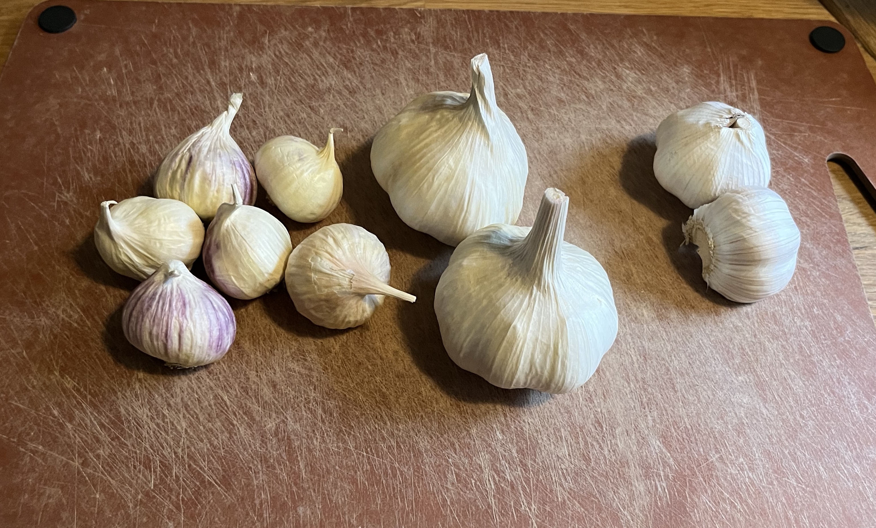 Som I kan se så er hvidløgene fra hvidløg-vin enten flotte og store, eller også så er de mindre og farvede smukt lilla.