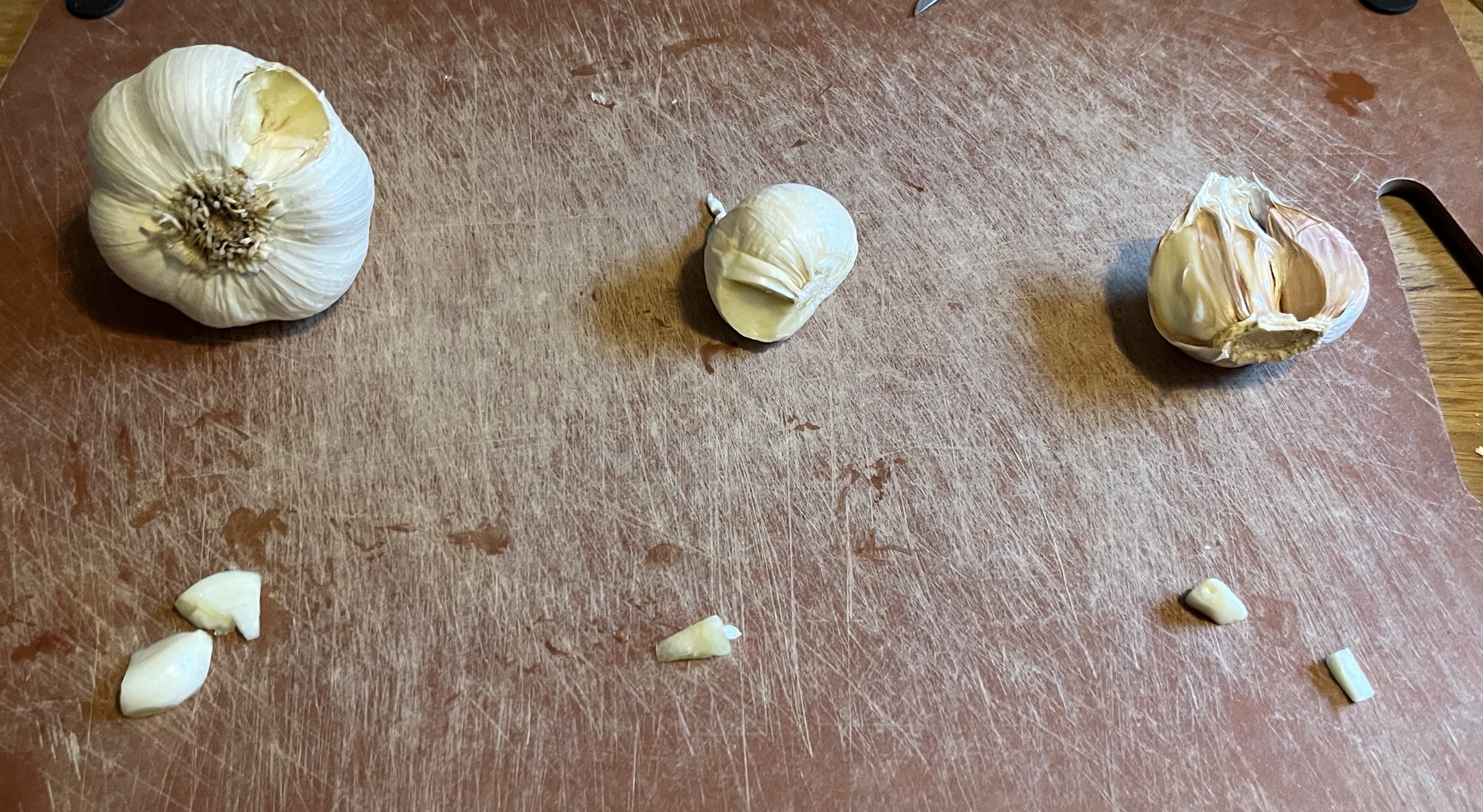 Nå men, der skulle jo smages på hvidløgene, og det er jo altid lidt specielt her i artiklerne, når jeg skal evaluere en råvare, fordi der er en vis risiko for, at de smager præcist som nogle, der formentlig er af lavere kvalitet. Men det skulle jo alligevel undersøges, om der var en smagsforskel, eller om den ekstra kvalitet var mere subtil.
